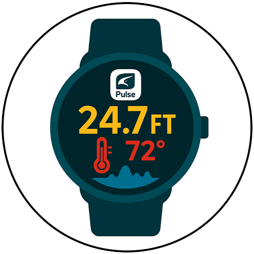 Syncs with the HawkEye® PULSE App to display real-time depth, temperature, and fish finder data directly on your smartwatch, keeping critical information at a glance anywhere on your vessel.