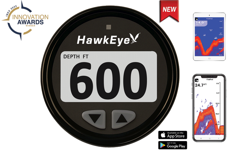 Navigate smarter with the HawkEye DepthTrax Edge, a next-generation depth finder combining intelligent sonar, vibrant color display, and full DepthTrax PLUS App integration. View real-time depth, water & air temperature, voltage, and VDR data on the Edge—or mirror it to the app with built-in HD Fish Finder capability for a fully connected experience on the water.