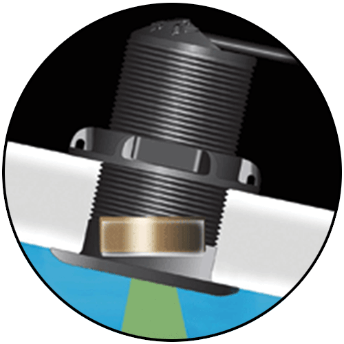 Upgrade to an ultra-sensitive thru-hull transducer for enhanced sonar accuracy and performance, ideal for high-speed or deep-water applications.